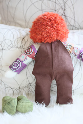 Во первых у нее куча волос на голове которые я три дня пришивала КАЖДУЮ волосину руками три раза !!! Ну потом веснушки, и получился мальчик, а точнее именно такой мальчик про которого я мечтала всегда чтоб у меня был такой рыженький с веснушками и толстенький.